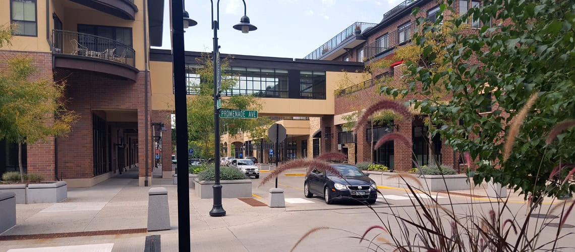 The Promenade of Wayzata is a another “Surban” development built on the site of a former shopping mall. This new fashion, food and fun district was built on the site of the old Bay Center Mall, close to the shores of Lake Minnetonka and the shopping and restaurants of Water Street. This luxury complex has a mix of senior housing, condos and apartments, with shops and restaurants on ground level. Rather than catering to Millennials, this development was developed for the 55+ market, to provide a walkable area that could become “the most lavish pedestrian environment in all the Twin Cities.”