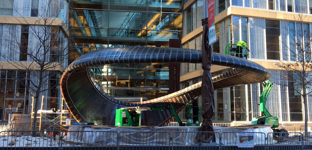 It makes me think of its historic building anchoring Nicollet Avenue for over a century, with its signature 1976Â Paul Granlund sculpture and bell tower both reaching skyward. The original church has delicate light filtering in from its rose window. In the new expansion, that circular window is lifted upward to the sky with the same theme of reaching to the heavens, this time with full light flooding in and dozens of delicate suspended lights uniting heaven and earth.