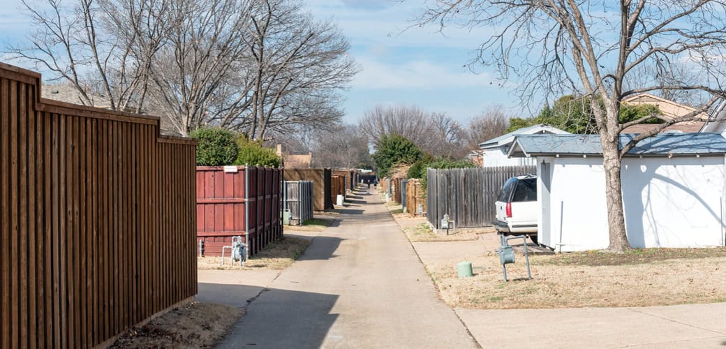In the United States alleys exist in both older commercial and residential areas, for both service providers purposes and automobile access. In residential areas, particularly those that were built before the 1950’s, alleys provide rear access to properties where a garage is located, or where garbage can be collected. A benefit of this was to keep away from the public side of a dwelling. Such alleys are generally graveled, roughly paved, and some were dirt. After the 1950’s alleys were seldom included in plans for new housing developments.