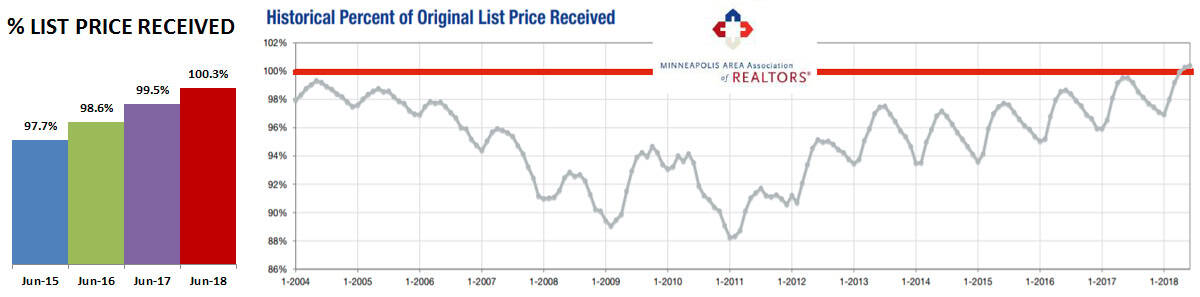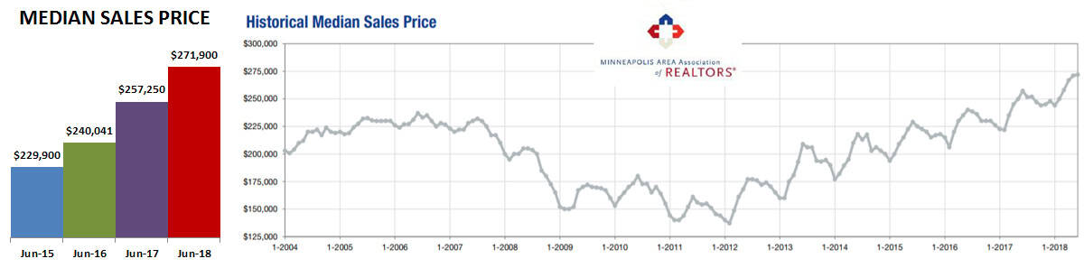 With average sale prices higher than list price it comes as no surprise that median sale prices also continue to rise, although slowing down a bit. Average median sale price for June 2018 was 5.7%, the lowest increase in the last 11 months.