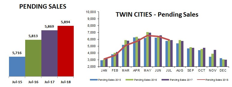 Average percent of list price received settled down to 99.8% after being over 100% for the last two months in a row. Median sales prices rose 6.6% when comparing July 2018 to July 2017. With total closed sales holding steady, these metrics seem to be more a reflection of market demand than price inflation.