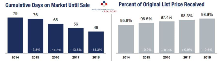 Average Twin Cities sale prices rose 6.3% in 2018 to $312,004, while median sale price rose 7.7% to $265,000. This was the seventh consecutive year of price growth from the low point in 2011, with a 61.4% increase in average sale price and a 76.6% increase in median sale price over that 7-year period.