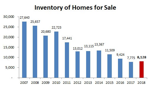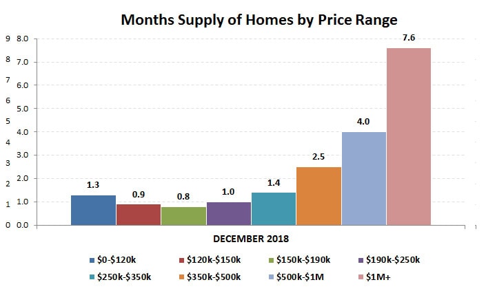 The increase in listings the last half of the year coupled with a decrease in sales resulted in a 4.5% increase in the total number of homes for sale at the end of 2018… a welcome change following three consecutive years of significant falling inventory!