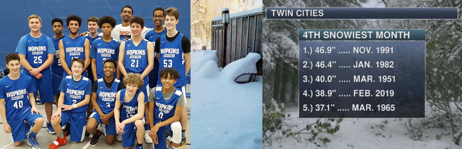 This is the final week of our grandson’s 9th grade basketball season… and also the end of the snowiest February on record. It seems everyone I talk to is ready for winter to be over! According to the National Weather Service (as of 2/27/19) 39.0″ of snow has fallen at the MSP Airport, which not only crushes the previous snowiest February on record of 26.5″ set in 1962, but it makes it the 4th snowiest MONTH in recorded history at MSP!
