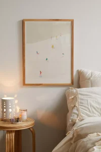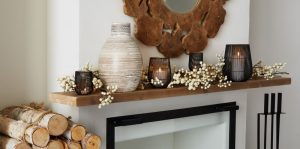Swap out bright colored artwork with a similarly sized piece more suitable for winter. Rustic wood pieces, or nature inspired prints, work well during the winter months.
