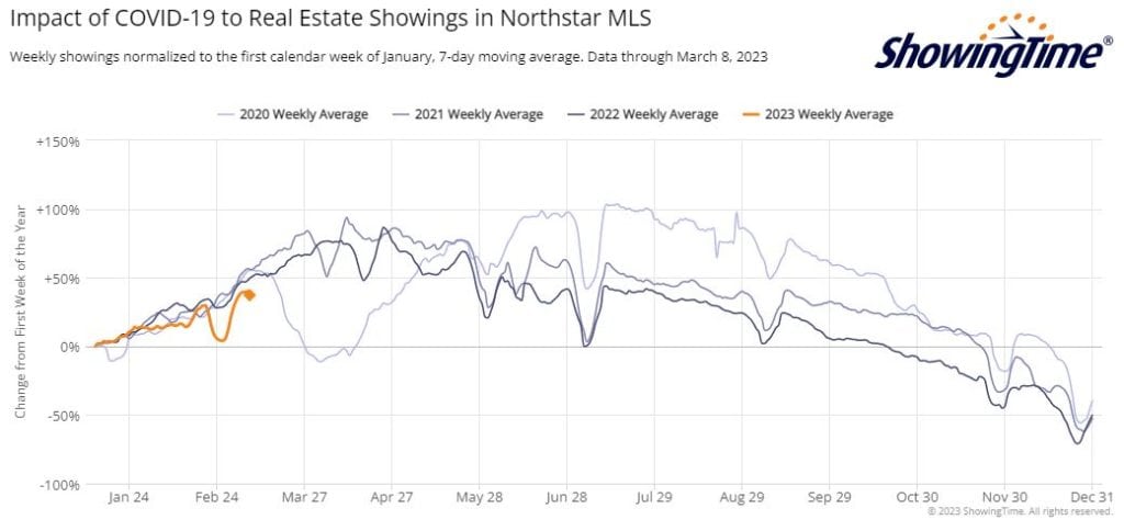 As expected, showings rebounded after the dip during the snow storm shutdown.