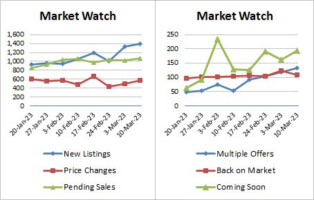 New listings climbed to the highest level since the beginning of November last year… price reductions slowly increased. It follows that multiple offers are also increasing… pending sales are holding steady.