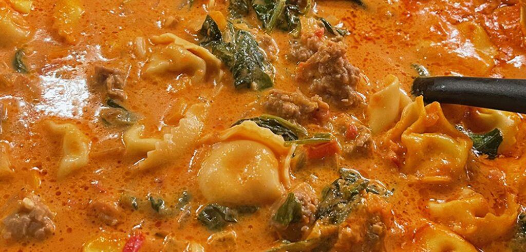 TORTELLINI SAUSAGE SOUP with spinach