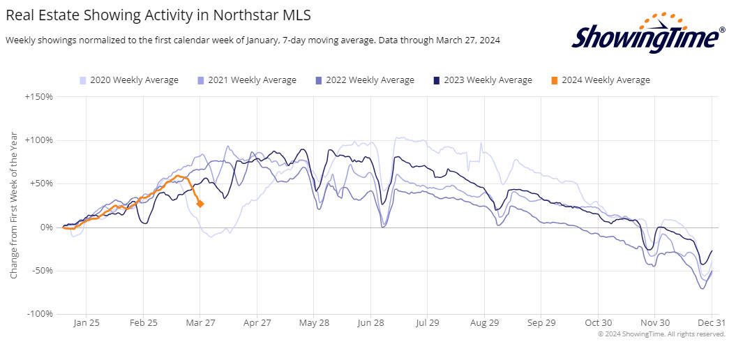Last year we had a big dip in property showings the end of February… this year it came the end of March. Both were due to major snowstorms, this year...