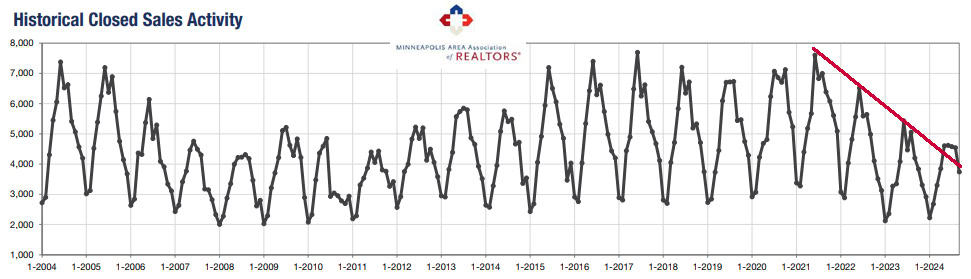 The figures above are based on statistics for the combined 13-county Twin Cities metropolitan area released by the Minneapolis Area Association of Realtors.