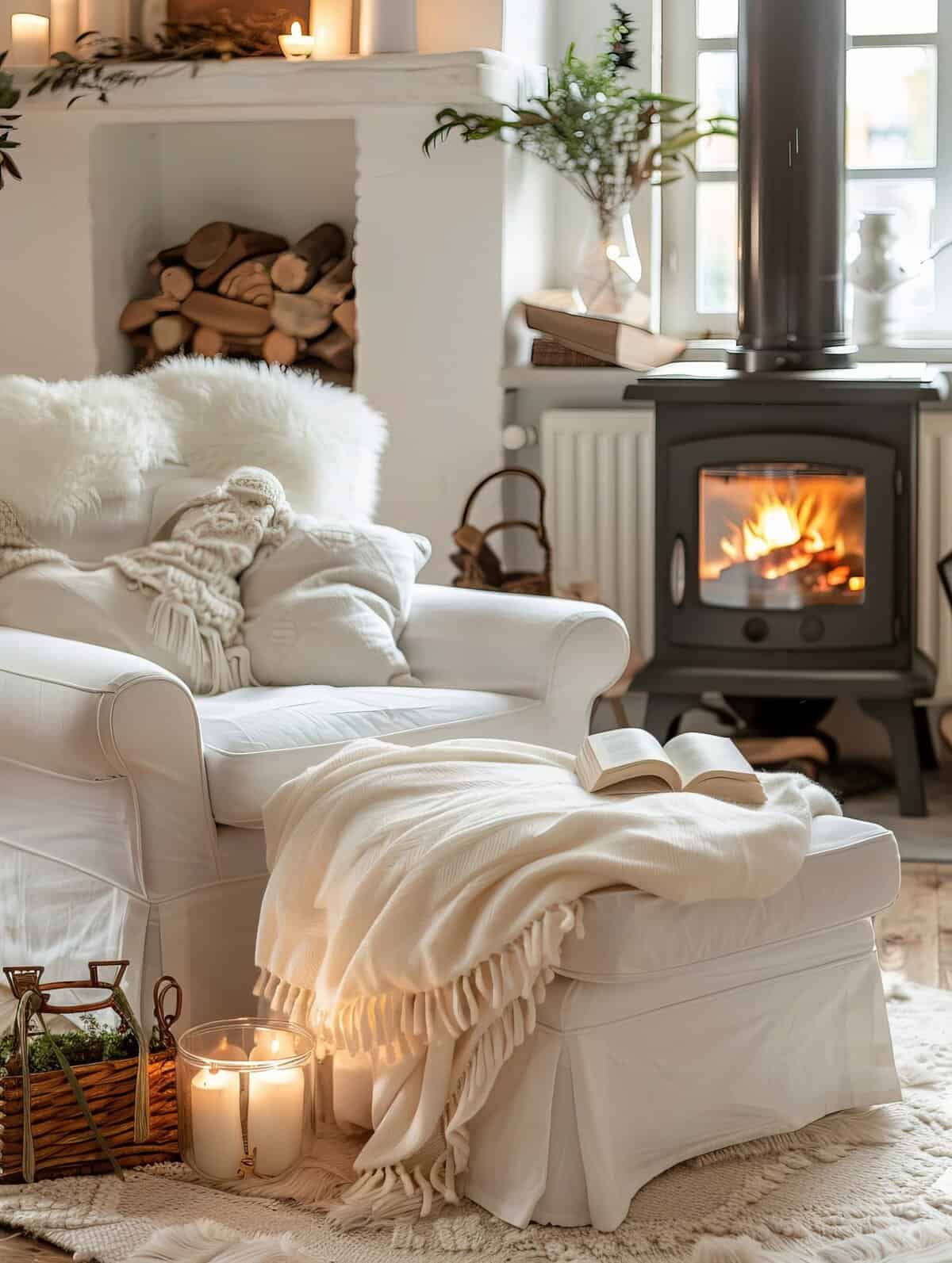 Hygge is about ambiance and pleasure; enjoying the simple pleasures in life and enjoying the beauty of your environment. To create this in your home, focus on your lighting. Add soft ambient light in your home in the form of candles or strings of twinkle lights. Avoid bright overhead lighting and instead create a calming, peaceful atmosphere with table lamps and floor lamps. Add mini lamps to areas like your kitchen or bathroom.