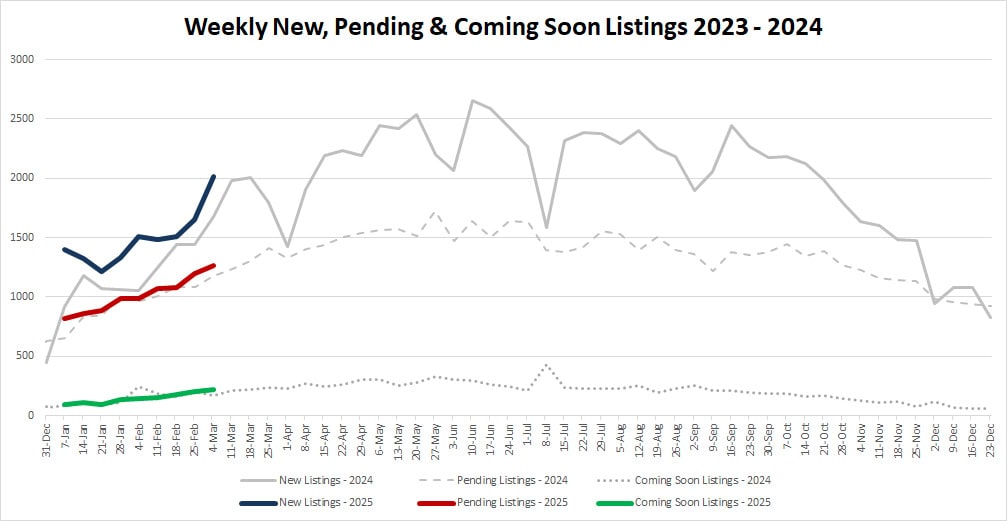 New listings jumped up this week, right on cue… mimicking the same pattern as last year and giving confidence that there will be homes to buy this spring.