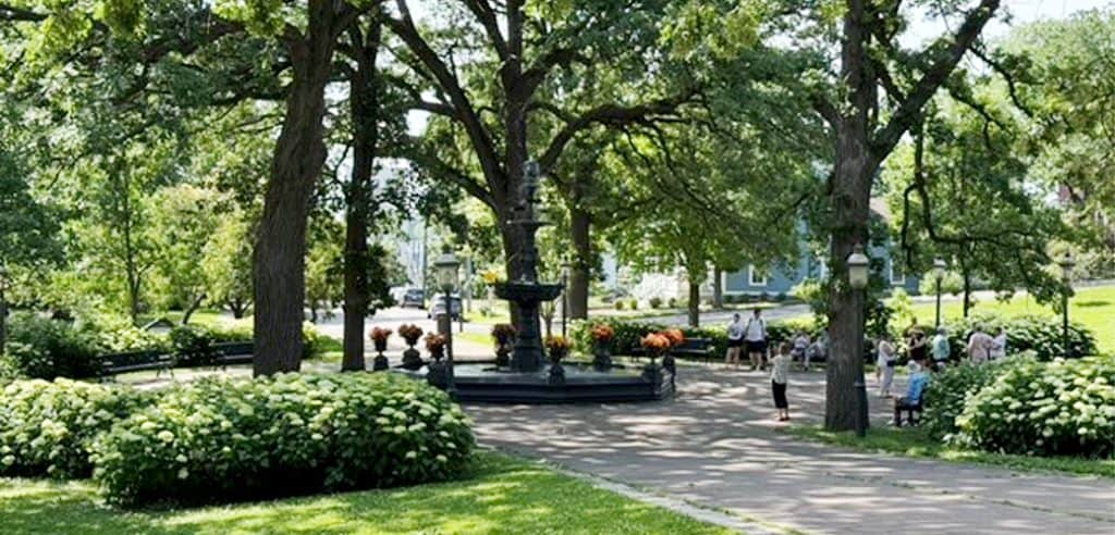 The grazing land eventually gave way to a formal New England style town square, with crossroads radiating out from a central fountain installed in 1881.