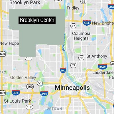 Brooklyn Center is located on the west bank of the Mississippi River, touching the northwest corner of Minneapolis and crossing I-694, Hwy 100 and touching I-94. It has easy access to downtown Minneapolis and other parts of the metro. It started as farms focused on market gardening for the city prior to WWII, and became a bedroom community and industrial job center after the war. Incorporated as a village in 1911 and as a city in 1966, they have recently rebranded themselves with a new tagline: AT THE CENTER… emphasizing affordability, proximity to major highways, diversity, parks and trails.