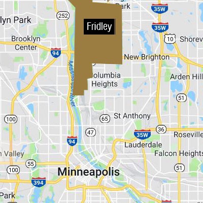 Fridley is a suburb that is primarily north of I-694, but has some portions that wrap around the west side of Columbia Heights… with a small section that touches Minneapolis on the east side of the Mississippi. It became a village in 1949 and a city in 1957. It is the operational headquarters of Medtronic. In 1965 one out of 4 homes were damaged or destroyed when Fridley was hit by two F-4 tornadoes. In 1986 another tornado spent about 15 minutes in Springbrook Nature Center on the north edge of Fridley, destroying thousands of century old trees. Both Minneapolis and St. Paul draw their municipal water supply from the Mississippi River in Fridley. North and South Innsbruck are unique communities north and south of I-694 with many custom homes built by different builders/architects… in other words, not a typical development. It even has a very unique mid-century modern home on a unique lot that is one of the highest points in the metro area.
