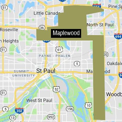 Maplewood, which is the corporate headquarters of 3M Corporation, was incorporated in 1957. Its unusual shape stretches across most of the northern and eastern borders of St. Paul, giving it easy access to many different parts of the east metro. It includes both Battle Creek Regional Park and Keller Regional Park, the oldest park in the Ramsey County park system.