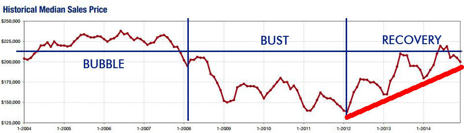 In spite of the seasonal drop in sales price, December 2014 median sales price was 5.2% ahead of the previous year, at $200,000, with homes selling at an average 94.1%...