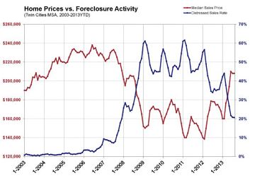The chart below recently released by the Minneapolis Area Association of REALTORS dramatically illustrates how closely home prices are tied to foreclosure activity. As foreclosures spiked up in 2007-2008, sales...