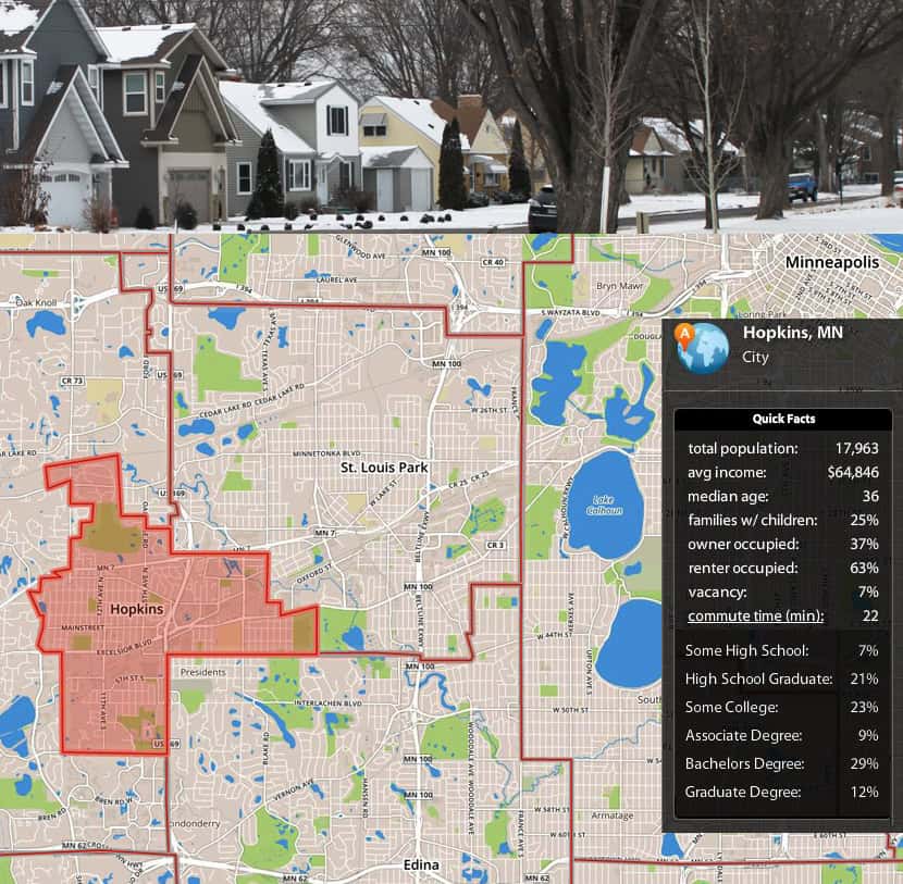 With a walk score of 78, the historic district of Hopkins just north of downtown is a location which combines walkability with an old small town feel… all within 15...