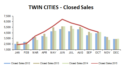 October closed sales were virtually the same as last year… 4,633 in 2015 vs 4,4632 in 2014! New listings were only 2.6% behind last year… …but October 2015 total homes...