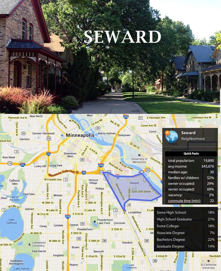 Seward is a small neighborhood near the University of Minnesota that has a Bike Score of 98 and walk scores in the 80’s! A biker’s paradise, its location makes it...